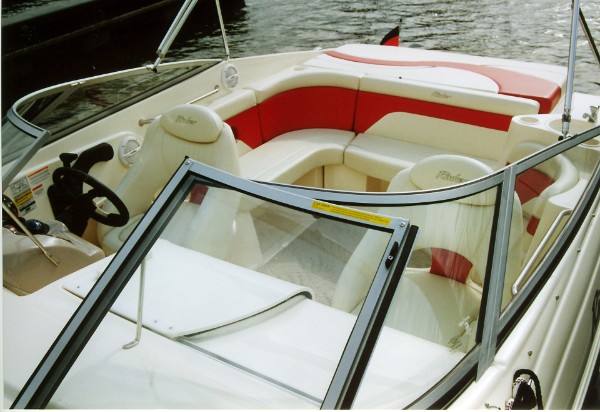 Hier ist das Bimini-Top gut sichtbar, bei großer Sonneneinstrahlung sehr zu empfehlen.